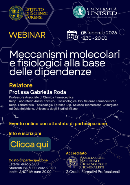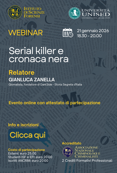 Accreditato dall'Associazione Nazionale Criminologi e Criminalisti (n. 20 crediti formativi professionali).