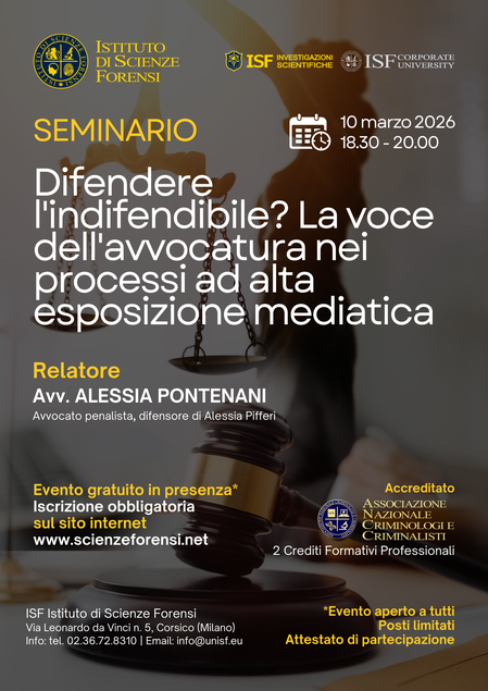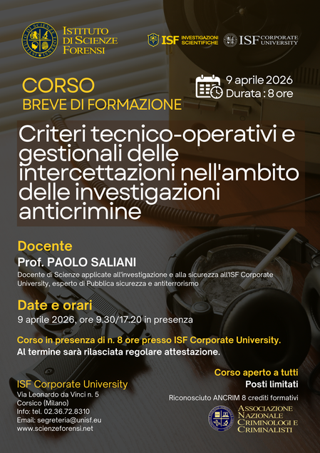 Accreditato dall'Associazione Nazionale Criminologi e Criminalisti (n. 8 crediti formativi professionali).