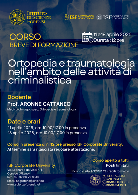 Corso breve di formazione Ortopedia e traumatologia nell'ambito delle attività di criminalistica