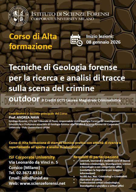 Corso di Alta formazione Tecniche di Geologia forense per la ricerca e analisi di tracce sulla scena del crimine outdoor